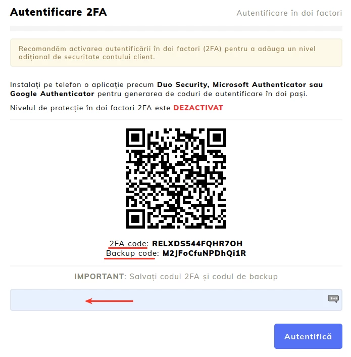 Κωδικός 2FA - αντιπροσωπεύει τον μοναδικό κωδικό που θα μεταφέρουμε στην κινητή εφαρμογή για να γίνει η σύνδεση μεταξύ της εφαρμογής και του λογαριασμού πελάτη;