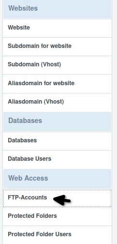 • Ο πίνακας ελέγχου ISPConfig επιτρέπει την προσθήκη απεριόριστου αριθμού λογαριασμών FTP που συνδέονται με τα domains που προστέθηκαν στην φιλοξενία στο μενού Ιστοσελίδες;