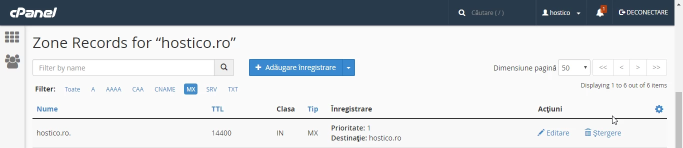 Προσθήκη ενός MX record στο πάνελ διαχείρισης cPanel, ανακατευθύνοντας τον διακομιστή αλληλογραφίας στο Google