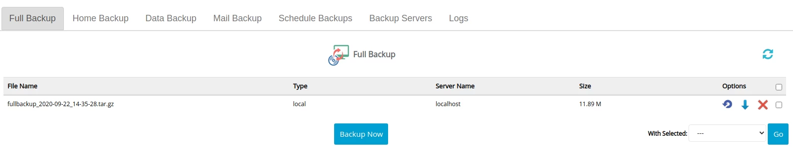 - Πλήρης αντίγραφο ασφαλείας - το αντίγραφο ασφαλείας περιλαμβάνει την ιστοσελίδα, τη βάση δεδομένων και τα emails.