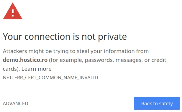 Το μήνυμα σφάλματος Η σύνδεσή σας δεν είναι ασφαλής ή Η σύνδεσή σας δεν είναι ιδιωτική, που εμφανίζεται από τον περιηγητή κατά την πρόσβαση στην ιστοσελίδα, προκαλείται από την έλλειψη εγκατεστημένου πιστοποιητικού SSL στην φιλοξενία ή από το γεγονός ότι το πιστοποιητικό SSL έχει λήξει.